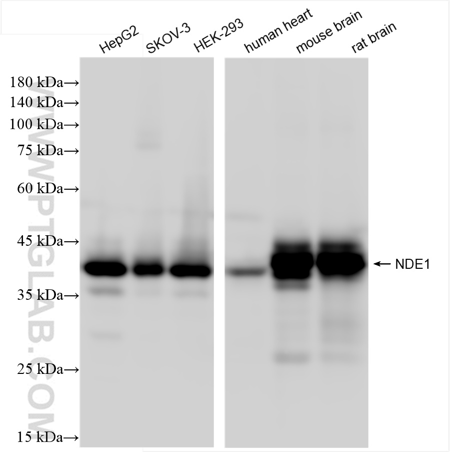 84799-4-PBS targets NDE1 as part of a matched antibody pair: