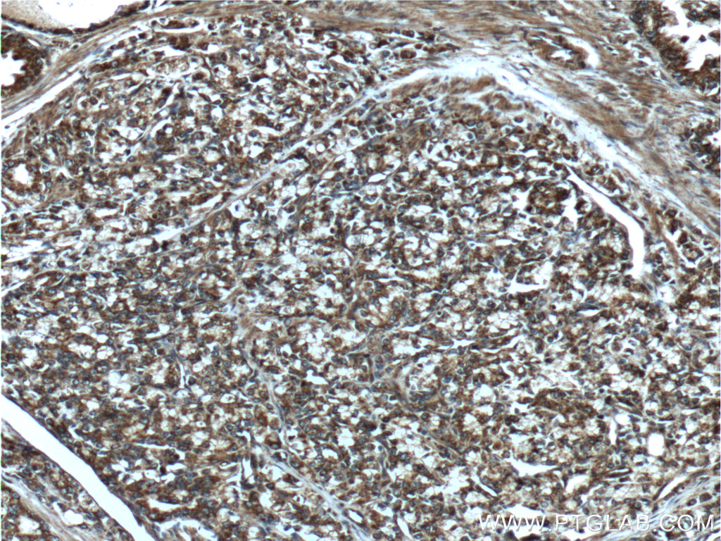 | Positive IHC detected in | human stomach cancer tissue, human prostate cancer tissue Note: suggested antigen retrieval with TE buffer pH 9.0; (*) Alternatively, antigen retrieval may be performed with citrate buffer pH 6.0 |