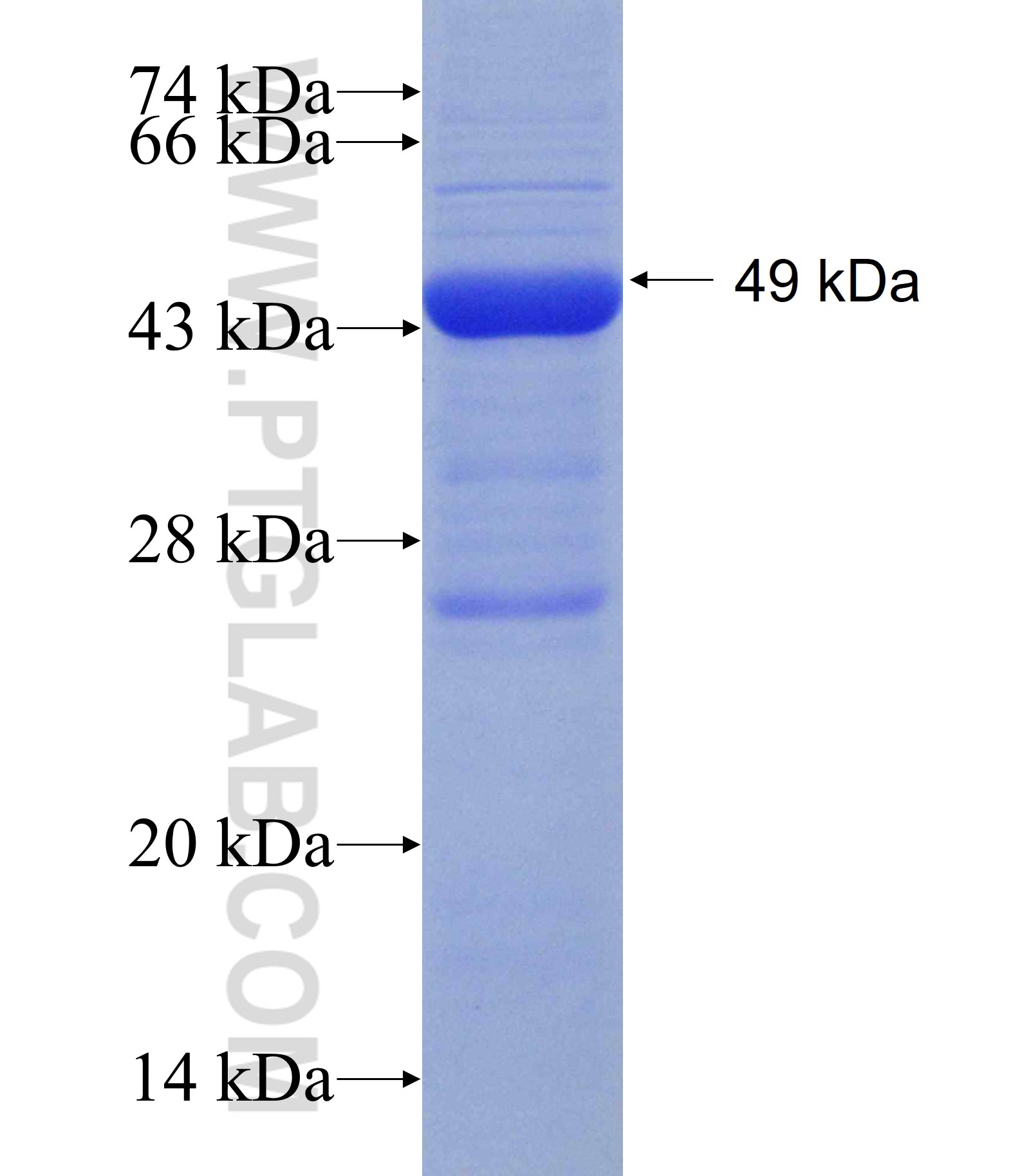 | Formulation | The purified protein was Lyophilized from sterile PBS (58mM Na2HPO4,17mM NaH2PO4, 68mM NaCl, pH7.4). 5 % trehalose and 5 % mannitol are added as protectant before lyophilization. The elution buffer contain 300mM imidazole. |