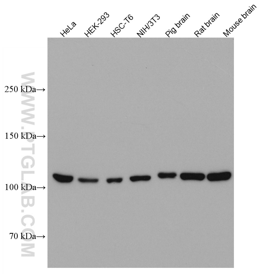 | Positive WB detected in | HeLa cells, HEK-293 cells, HSC-T6 cells, NIH/3T3 cells, pig brain tissue, rat brain tissue, mouse brain tissue |