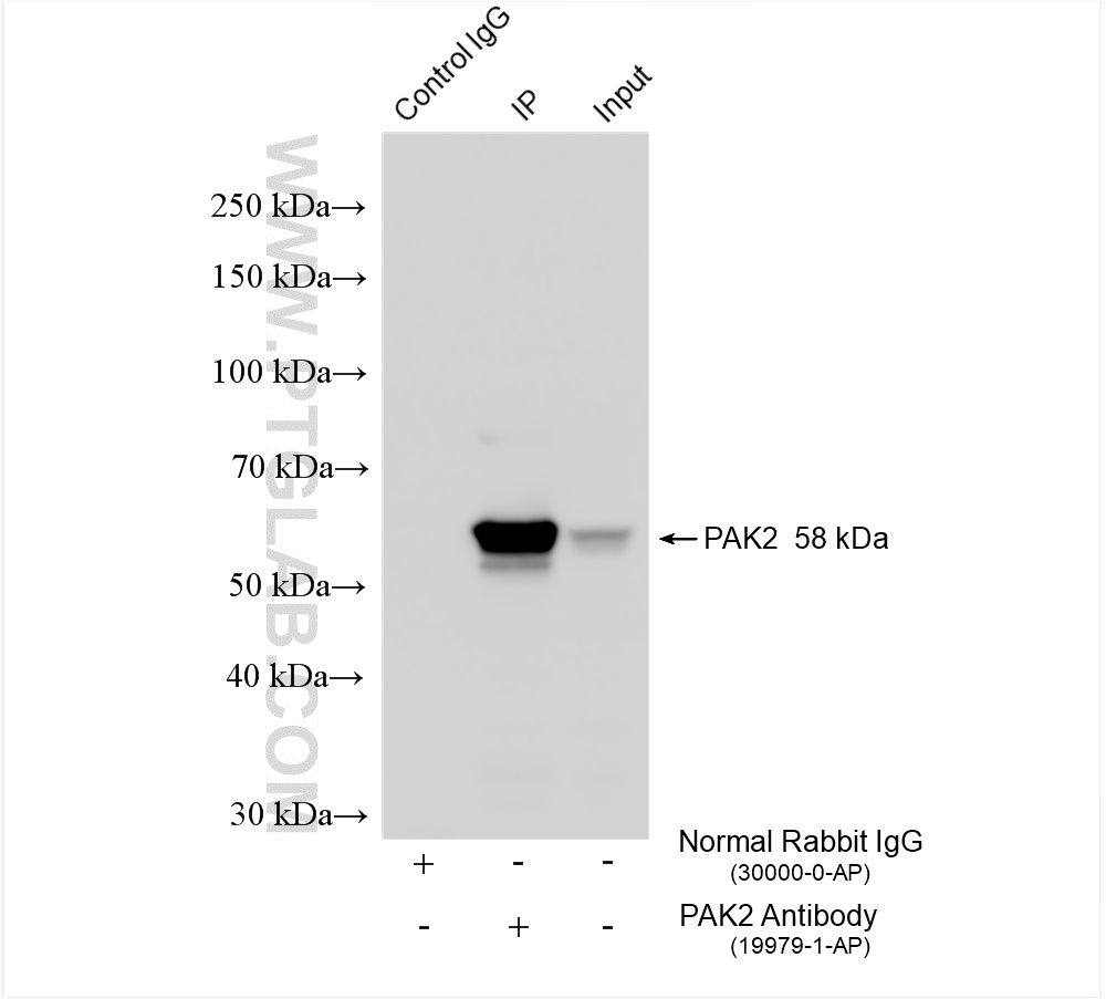 19979-1-AP targets PAK2 in WB, IF/ICC, IP, ELISA applications and shows reactivity with human samples.