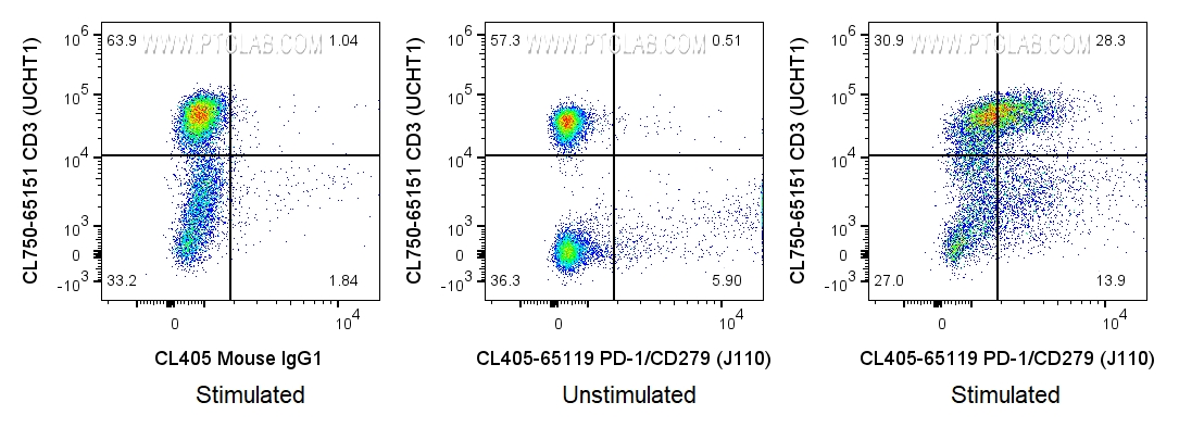 CL405-65119 targets PD-1/CD279 in FC applications and shows reactivity with human samples.