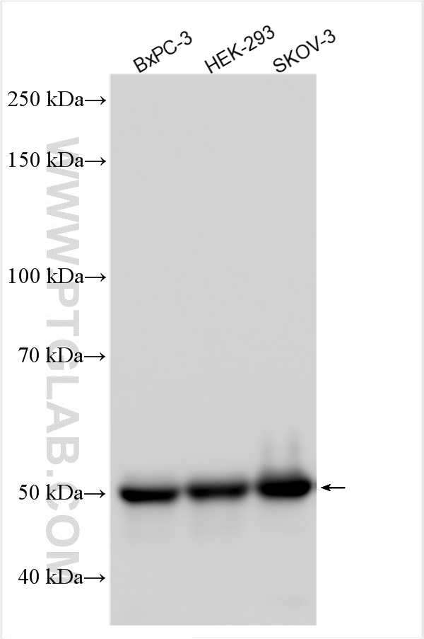 | Positive WB detected in | BxPC-3 cells, HEK-293 cells, SKOV-3 cells, HepG2 cells, NIH/3T3 cells, mouse kidney tissue |