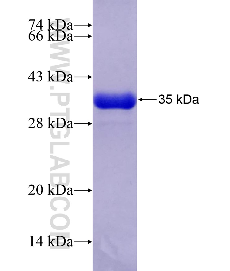 | Formulation | The purified protein was Lyophilized from sterile PBS (58mM Na2HPO4,17mM NaH2PO4, 68mM NaCl, pH7.4). 5 % trehalose and 5 % mannitol are added as protectant before lyophilization. The elution buffer contain 300mM imidazole. |
