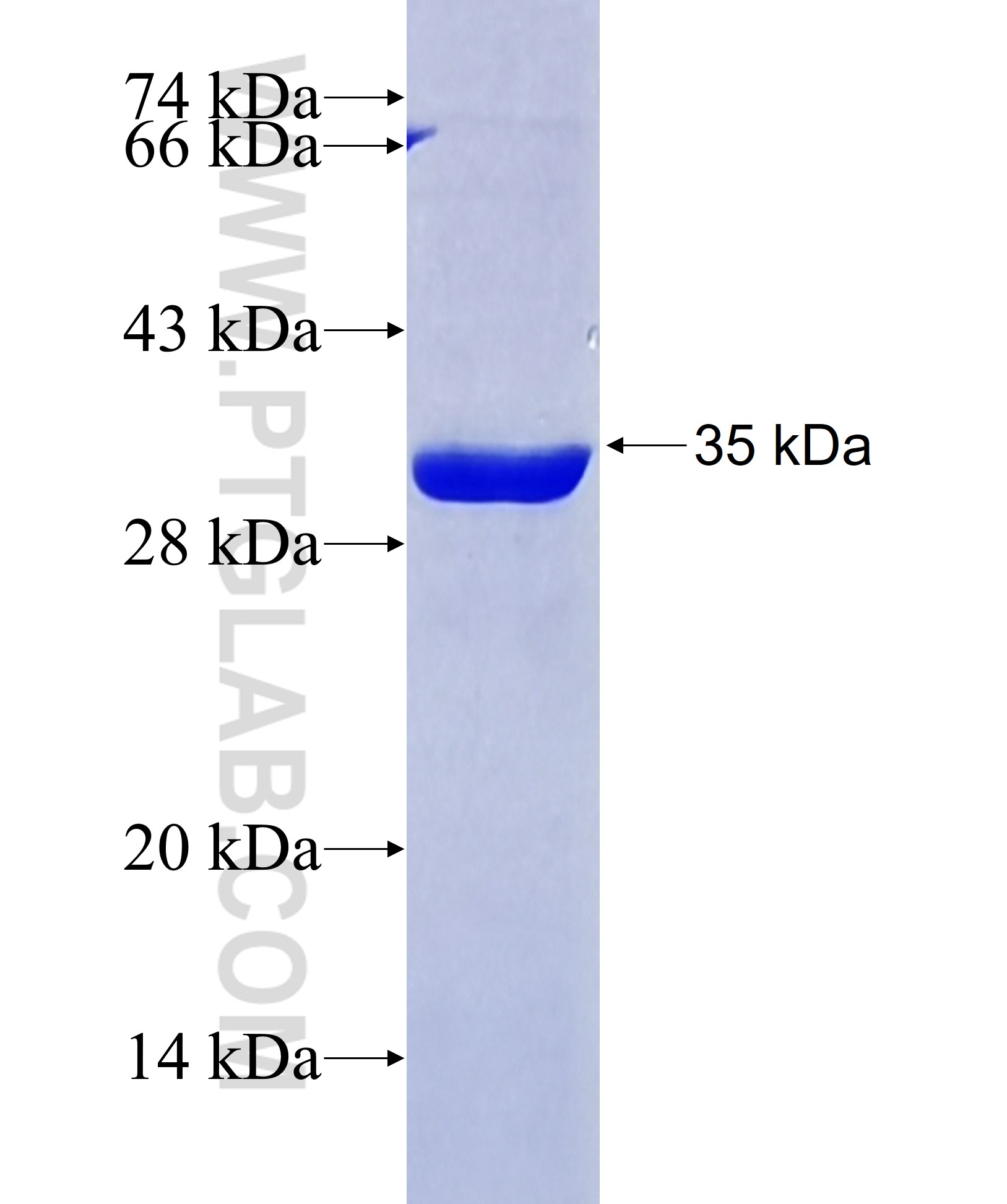 | Formulation | The purified protein was Lyophilized from sterile PBS (58mM Na2HPO4,17mM NaH2PO4, 68mM NaCl, pH7.4). 5 % trehalose and 5 % mannitol are added as protectant before lyophilization. The elution buffer contain 300mM imidazole. |