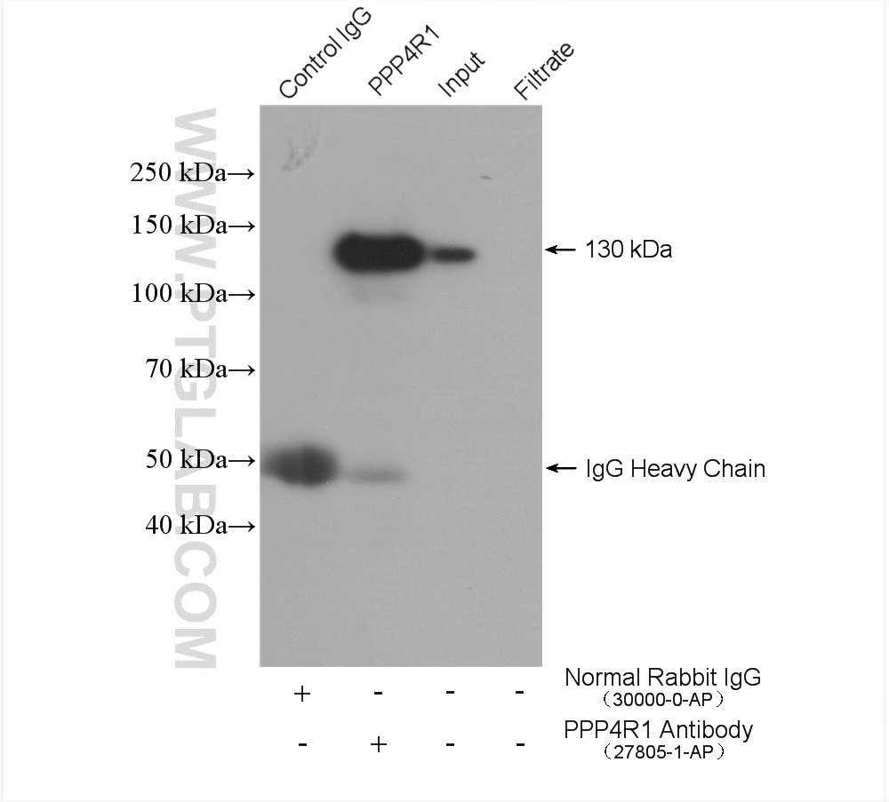 27805-1-AP targets PPP4R1 in WB, IP, IF, IHC, ELISA applications and shows reactivity with Human samples.
