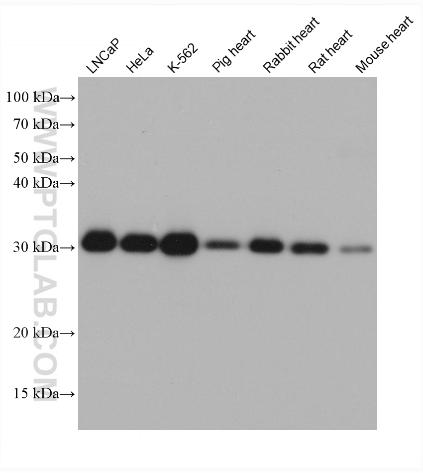 | Positive WB detected in | LNCaP cells, HeLa cells, K-562 cells, Pig heart, Rabbit heart, Rat heart, Mouse heart |