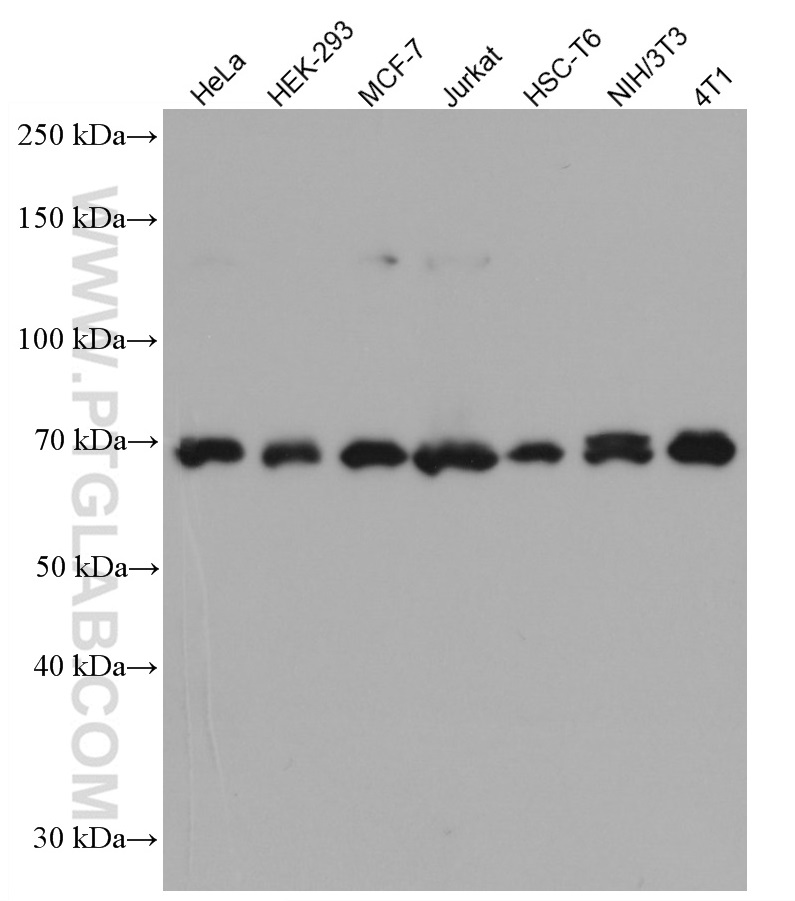 | Positive WB detected in | HeLa cells, HEK-293 cells, MCF-7 cells, Jurkat cells, HSC-T6 cells, NIH/3T3 cells, 4T1 cells |