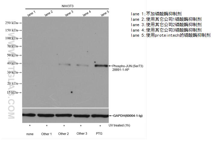 含有 sodium fluoride,sodium orthovanadate,Sodium Pyrophosphate,β-glycerophosphate,Imidazole,Sodium molybdate,Sodium tartrate dibasic dihydrate等多种抑制剂。
