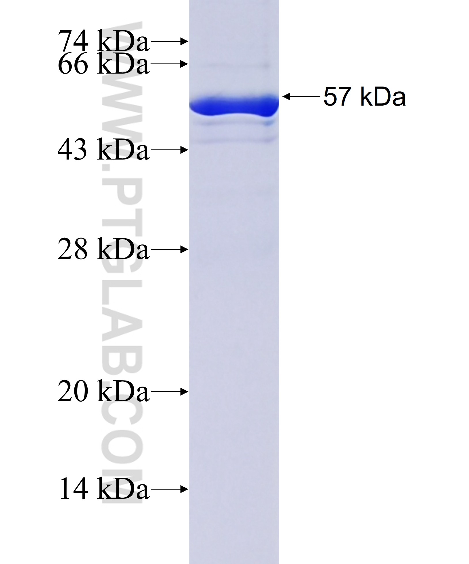 | Formulation | The purified protein was Lyophilized from sterile PBS (58mM Na2HPO4,17mM NaH2PO4, 68mM NaCl, pH8.0). 5 % trehalose and 5 % mannitol are added as protectant before lyophilization. The elution buffer contain 100mM GSH. |