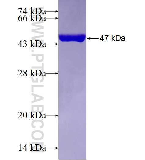 | Formulation | The purified protein was Lyophilized from sterile PBS (58mM Na2HPO4,17mM NaH2PO4, 68mM NaCl, pH8.0). 5 % trehalose and 5 % mannitol are added as protectant before lyophilization. The elution buffer contain 100mM GSH. |