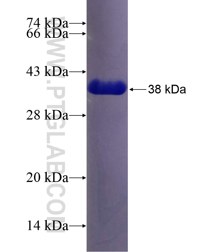 | Formulation | The purified protein was Lyophilized from sterile PBS (58mM Na2HPO4,17mM NaH2PO4, 68mM NaCl, pH8.0). 5 % trehalose and 5 % mannitol are added as protectant before lyophilization. The elution buffer contain 100mM GSH. |