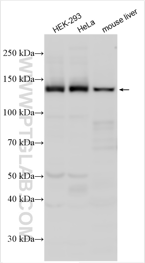 | Positive WB detected in | HEK-293 cells, HepG2 cells, HeLa cells, mouse liver tissue |