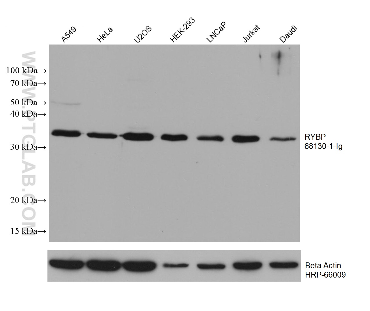 68130-1-PBS targets RYBP in WB, Indirect ELISA applications and shows reactivity with Human, mouse samples.