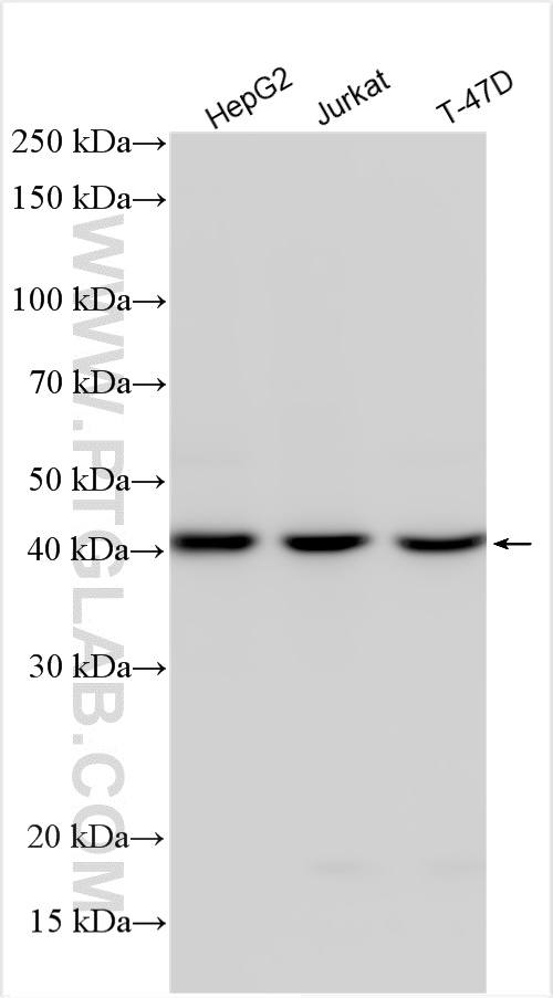 | Positive WB detected in | Jurkat cells, HepG2 cells, mouse liver tissue, T-47D cells |