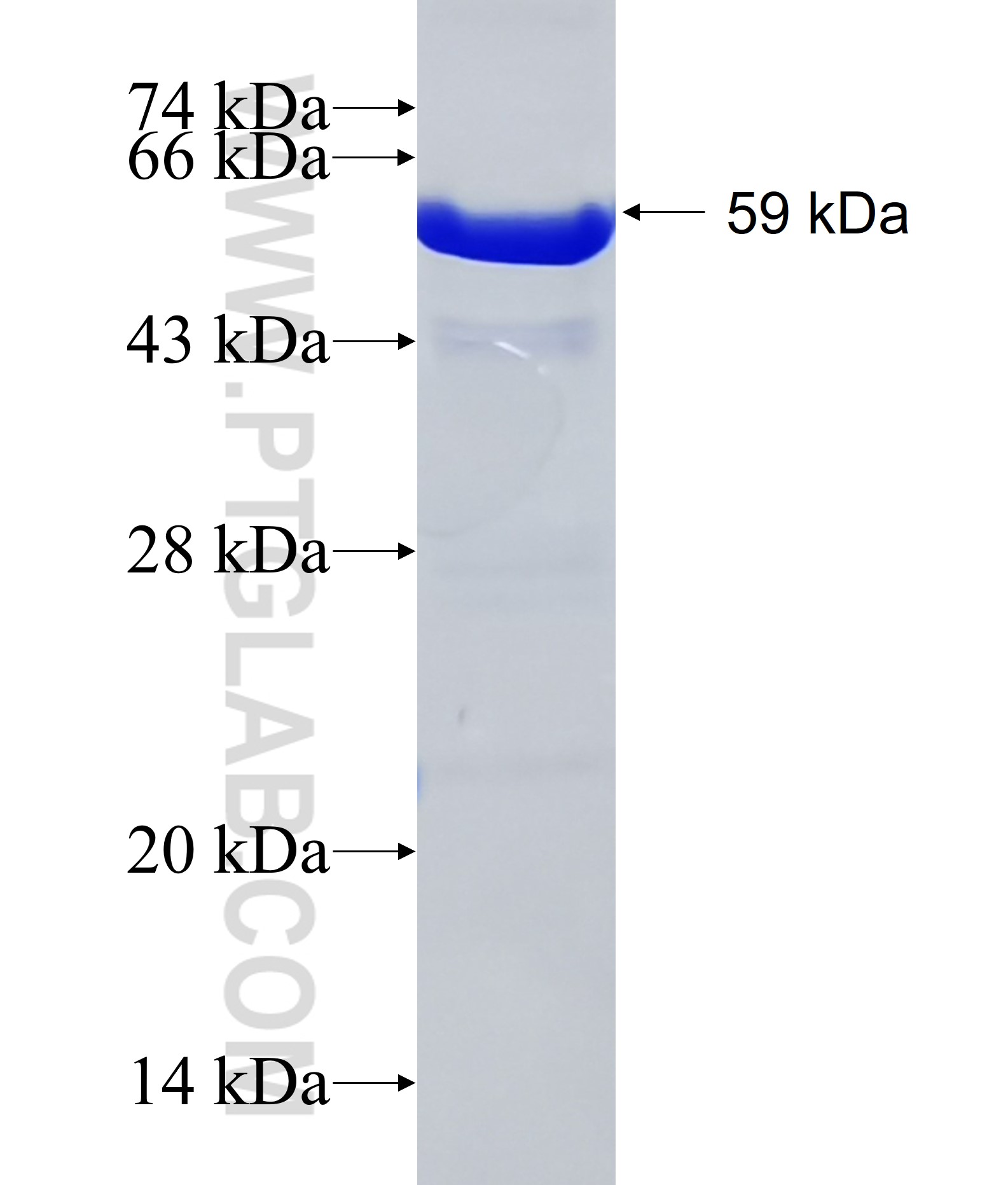 | Formulation | The purified protein was Lyophilized from sterile PBS (58mM Na2HPO4,17mM NaH2PO4, 68mM NaCl, pH8.0). 5 % trehalose and 5 % mannitol are added as protectant before lyophilization. The elution buffer contain 100mM GSH. |