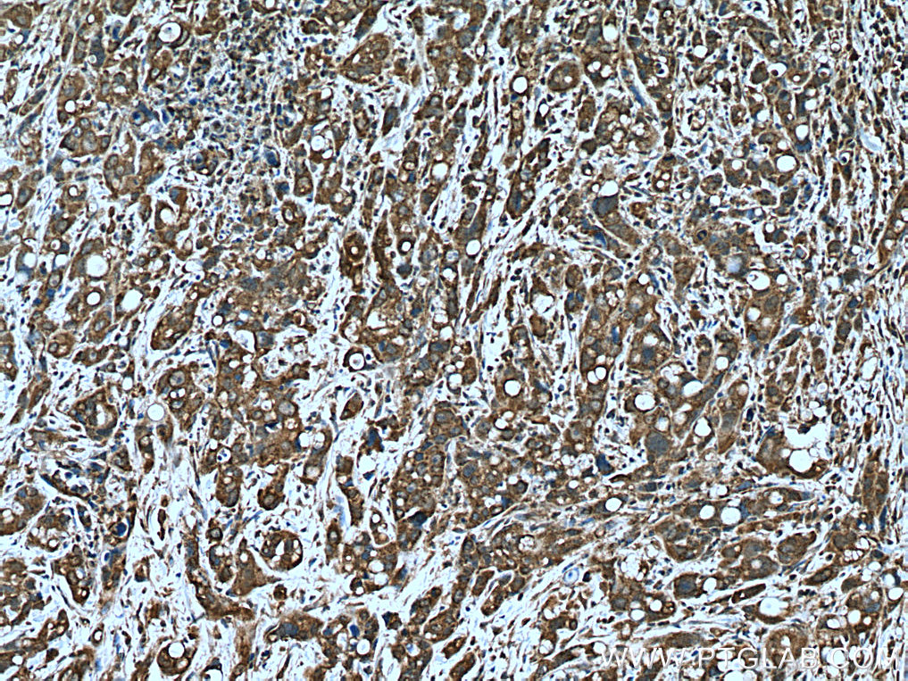 SLC25A22 encodes a mitochondrial glutamate/H+ symporter with highly expression in brain, especially in astrocytes, where it controls glutamate uptake. The mutations of SLC25A22 are associated with the early/infantile epileptic encephalopathies. It has been shown that SLC25A22 plays a key role in promoting proliferation and migration in cancer, such as human colorectal cancer (CRC) and Gallbladder cancer (GBC). And there is a result that the expression of SLC25A22 in GBC was significantly higher than that in adjacent tissues. 25402-1-AP antibody is specific to SLC25A22.(PMID: 30814911, 25033742, 24596948)