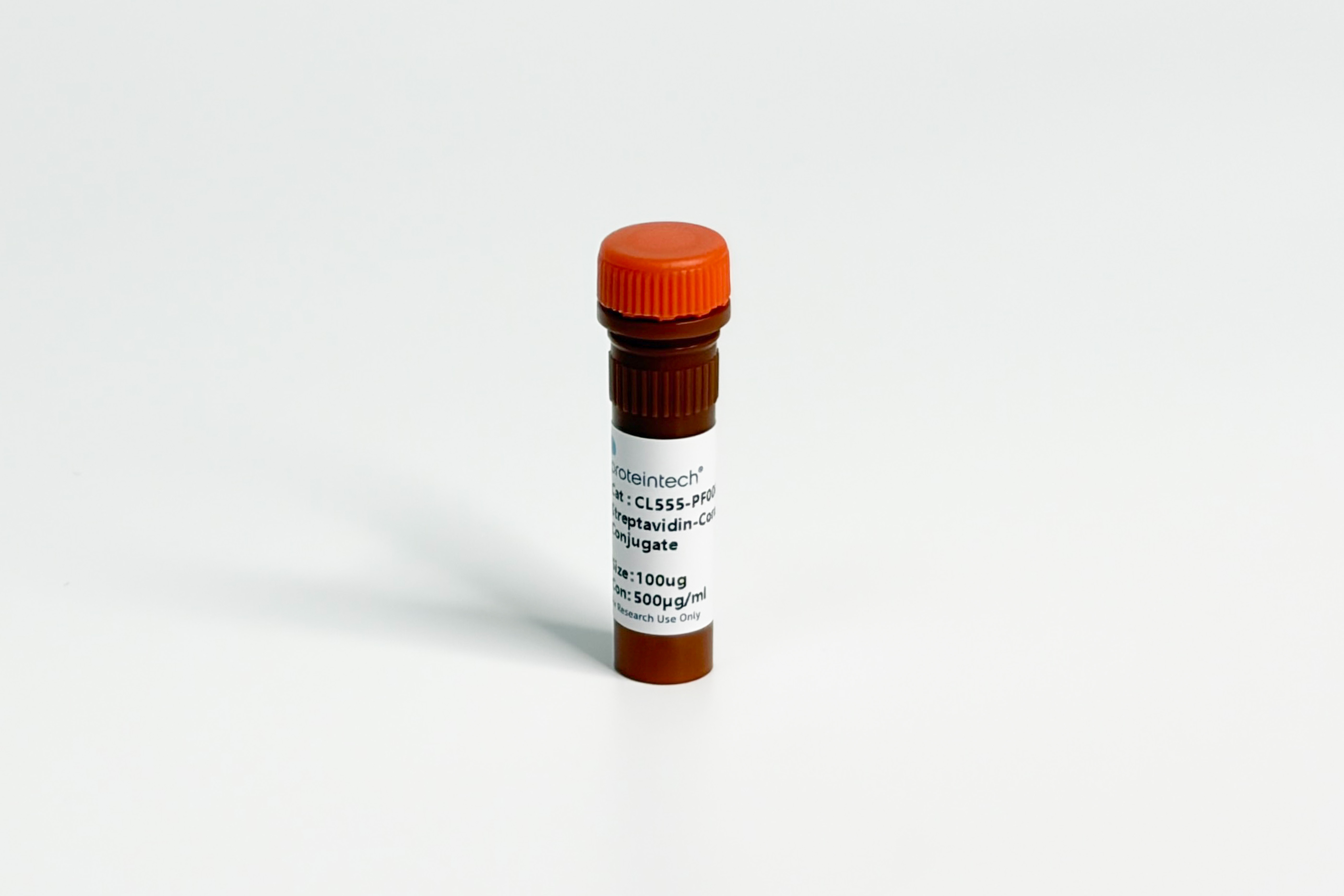 Streptavidin-CoraLite® Plus 555 Conjugate (CL555-PF00030) is a conjugate solution product of a fluorescent marker (CoraLite® Plus 555) and streptavidin. Suggested working solution concentrations or dilutions range from 1:200 to 1:1000. It can be used in conjunction with biotinylated proteins (Biotin-conjugated affinity-purified secondary antibodies of various types, or Biotin-conjugated antibodies and chromatography-grade proteins) for a variety of immunoassays.
