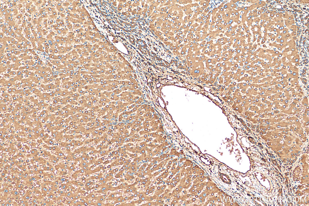 | Positive IHC detected in | human hepatocirrhosis tissue Note: suggested antigen retrieval with TE buffer pH 9.0; (*) Alternatively, antigen retrieval may be performed with citrate buffer pH 6.0 |