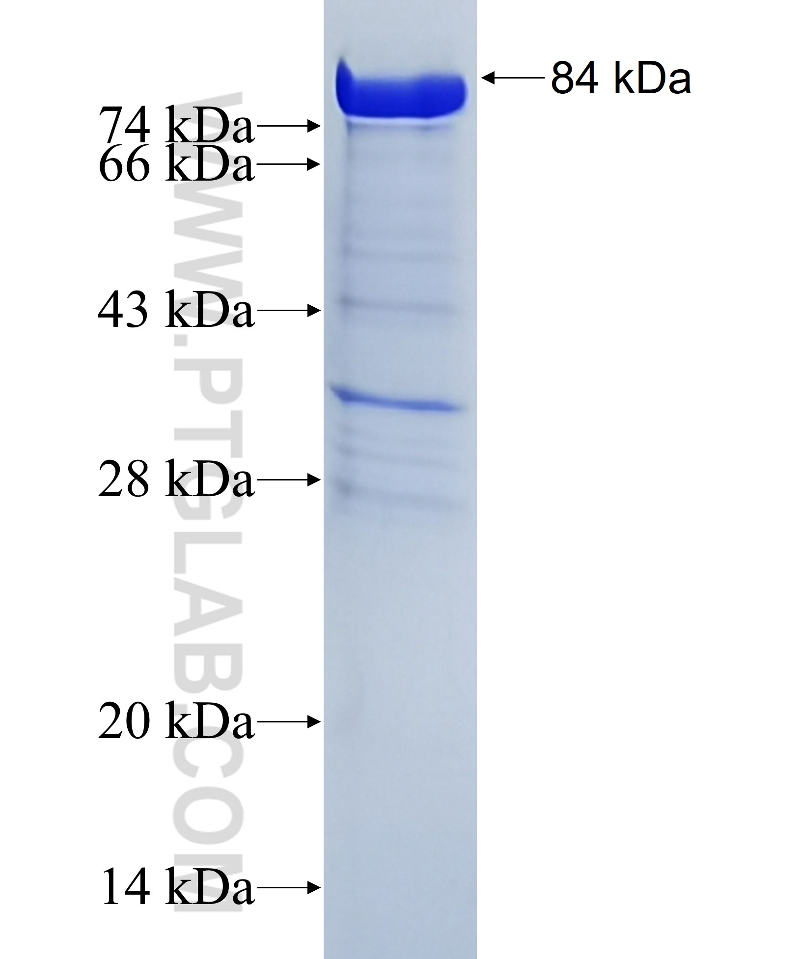 Formulation The protein was expressed as GST-tagged fusion protein by E.Coli and purified by Glutathione-sepharose. The purified protein was resolved in PBS (58mM Na2HPO4,17mM NaH2PO4, 68mM NaCl, pH8.0 ) added with 15% glycerol. The elution buffer contain 100mM GSH.