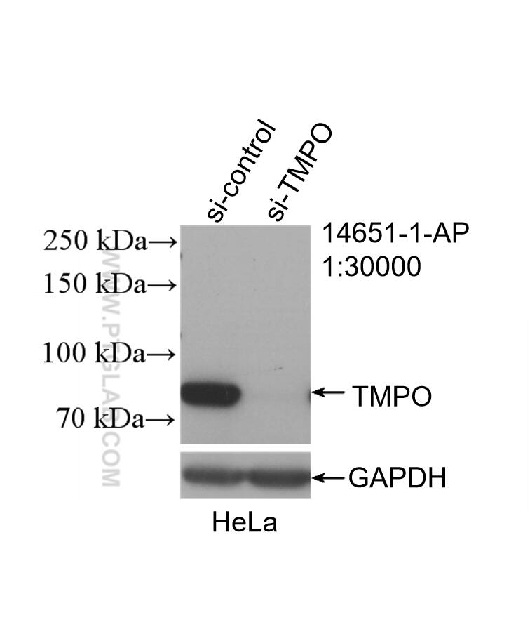 14651-1-AP targets TMPO/LAP2 in WB, IHC, IF/ICC, IP, ELISA applications and shows reactivity with human, mouse, rat samples.