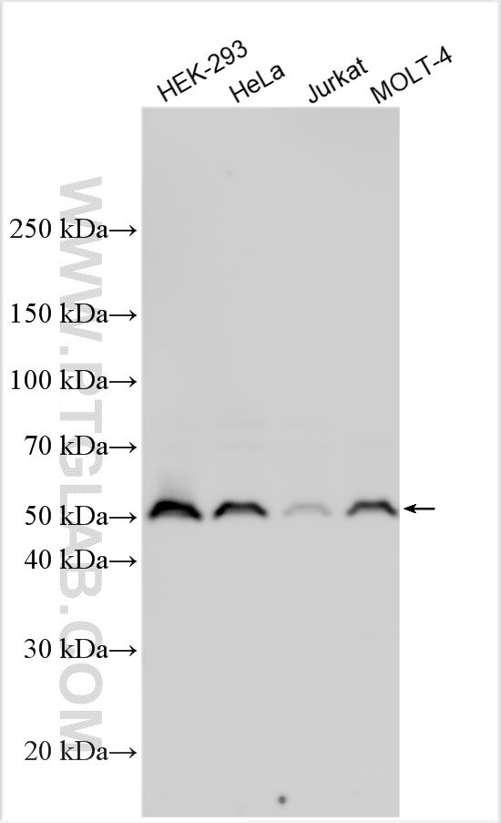 | Positive WB detected in | HEK-293 cells, HeLa cells, human testis tissue, Jurkat cells, MOLT-4 cells |