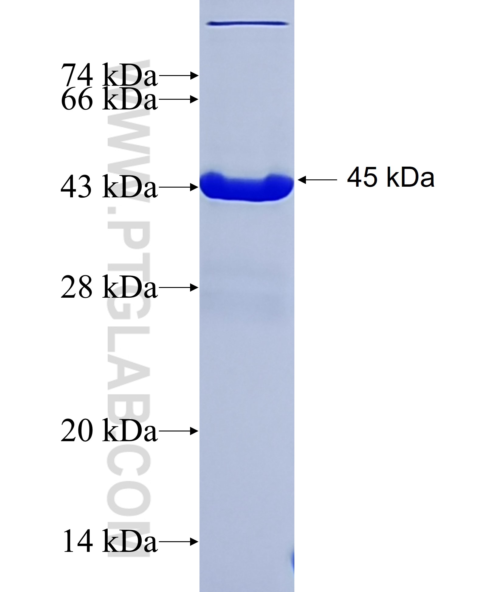 | Formulation | The purified protein was Lyophilized from sterile PBS (58mM Na2HPO4,17mM NaH2PO4, 68mM NaCl, pH8.0). 5 % trehalose and 5 % mannitol are added as protectant before lyophilization. The elution buffer contain 100mM GSH. |