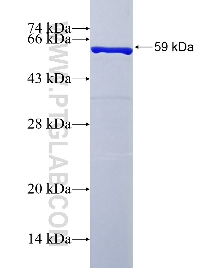| Formulation | The purified protein was Lyophilized from sterile PBS (58mM Na2HPO4,17mM NaH2PO4, 68mM NaCl, pH8.0). 5 % trehalose and 5 % mannitol are added as protectant before lyophilization. The elution buffer contain 100mM GSH. |