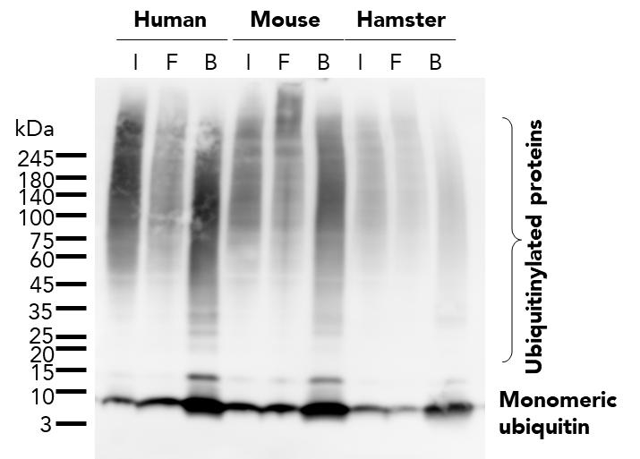| Specificity/Target | Binds to monomeric ubiquitin, ubiquitin chains, and ubiquitinylated proteins. Ubiquitin chains may be linked via lysines; linkages via lysines such as K11, K48 and K63 are compatible with binding by the Ubiquitin-Trap (further linkage types also likely to be compatible, but not tested). |