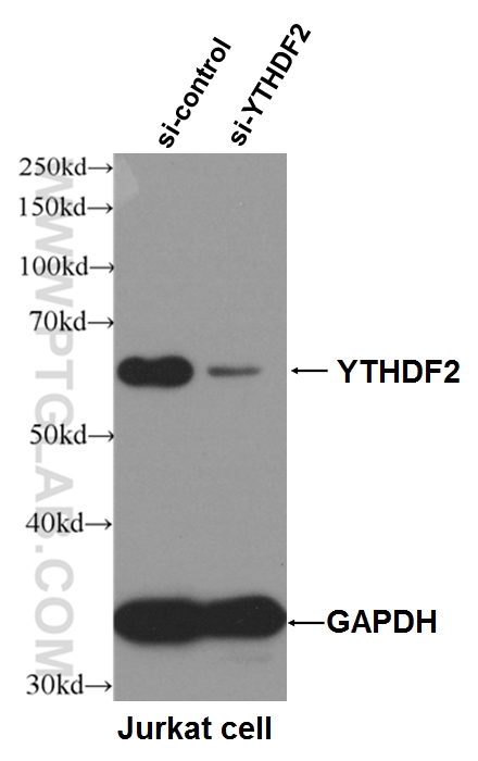 24744-1-AP targets YTHDF2 in WB, IHC, IF/ICC, IF-P, IP, CoIP, chIP, RIP, ELISA, CLIP applications and shows reactivity with human, mouse, rat samples.