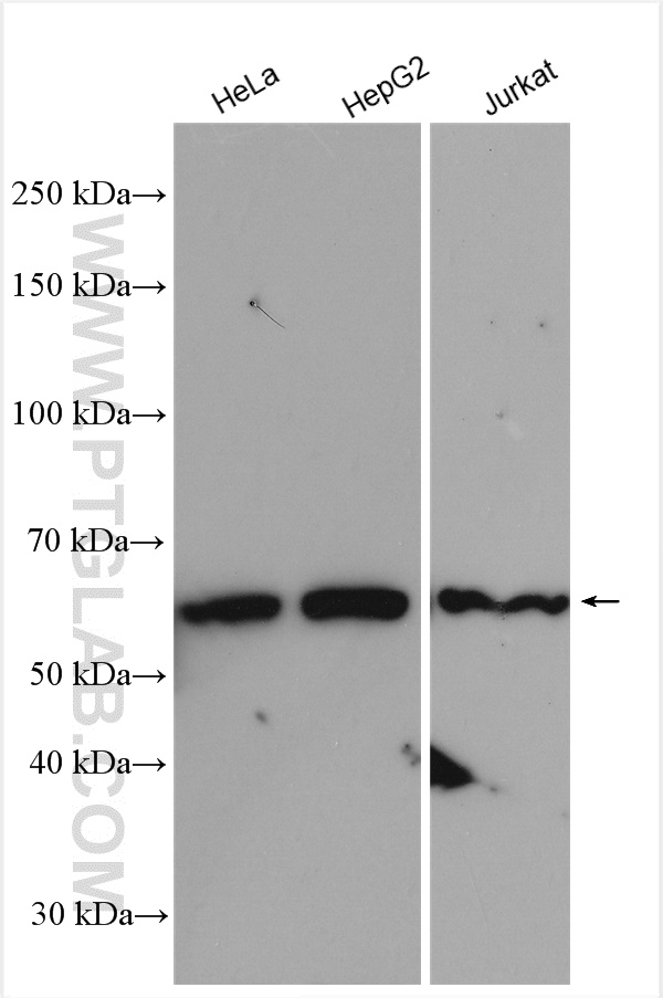 | Positive WB detected in | HeLa cells, HepG2 cells, Jurkat cells |