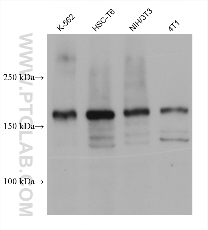 Zinc finger E-box-binding homeobox (ZEB2) is a key transcription factor that acts as a multifunctional regulator during nervous system development. ZEB2 contains two zinc finger domains and a homeodomain-like sequence and interacts with the TGF-ß superfamily signaling regulators, Smads, to regulate the expression of their downstream genes. ZEB2 is expressed in the developing neural tube, as well as in neural crest cells, the hippocampus and the cerebral cortex. ZEB2 has previously been implicated in EMT, cell-cycle progression, apoptosis and senescence. ZEB2 was overexpressed in bladder, ovarian, stomach, pancreatic and squamous cell carcinoma, in the intestinal subtype of stomach cancers, and at the invasive front of CRC where EMT is most prominen. ZEB2 also mediates cell-fate decision in neuronal, T cells and hematopoietic stem cells. The calculated molecular weight of ZEB2 is 136 kDa, but we find the 95 kDa band in some publication(PMID: 27659015 )