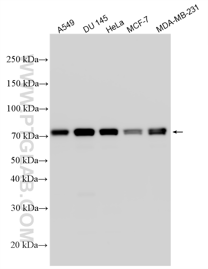 | Positive WB detected in | A549 cells, HeLa cells, MCF-7 cells, DU 145 cells, MDA-MB-231 cells |