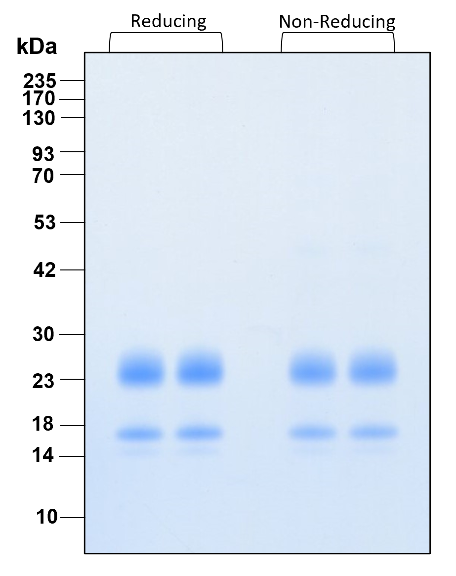 | Molecular Mass | 17 and 27 kDa reduced and non-reduced, monomer, glycosylated |