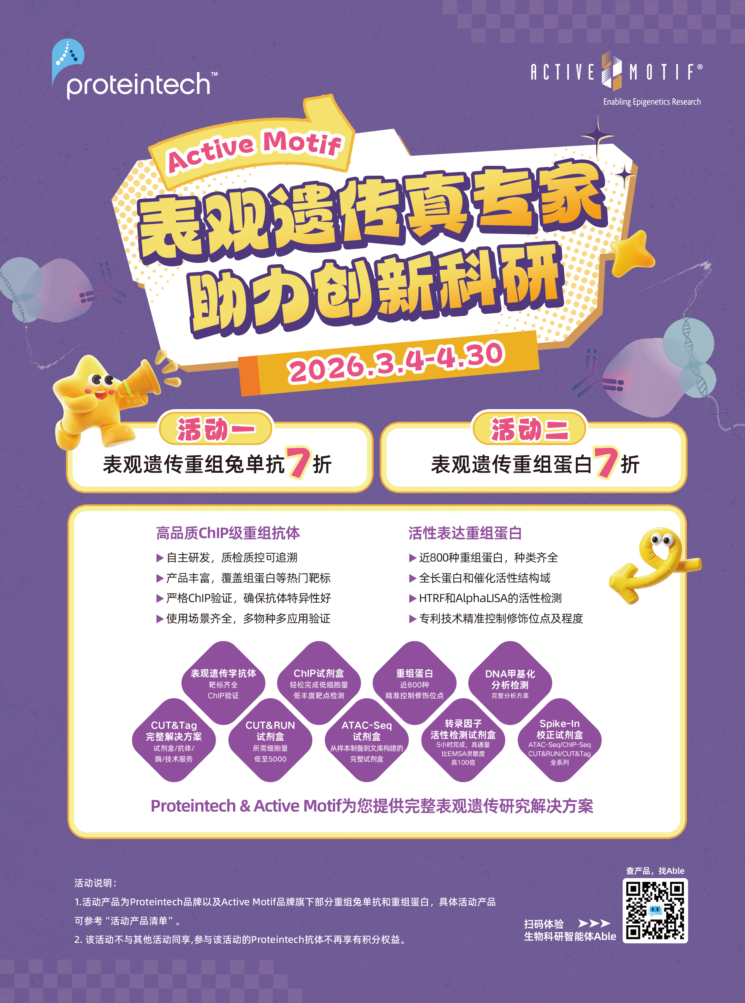 1.活动产品为Proteintech品牌以及Active Motif品牌旗下重组蛋白和部分重组免单抗,具体重组免单抗活动产品如下表。