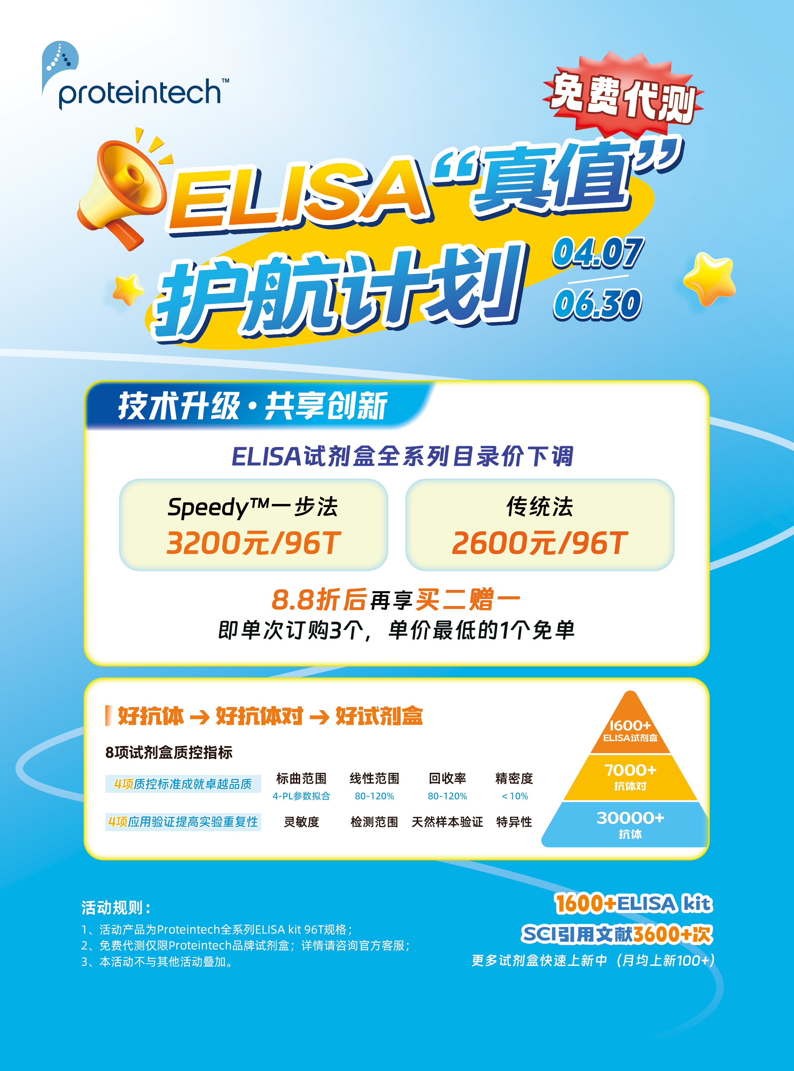 1.活动产品为Proteintech品牌ELISA Kit 96T规格;