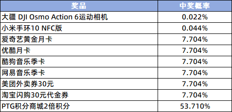 本次抽奖活动中,所有奖项的中奖概率已在系统中预先设定,具体分布如下表所示: